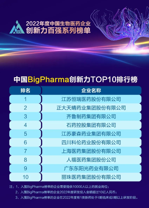 同日,2023米思会(中国医药健康产业共生大会)发布“2022年度中国生物医药企业创新力百强系列榜单”,利来w66国际医药再蝉联“中国BigPharma创新力TOP10”榜首。该榜单自2021年启动评选以来,利来w66国际医药稳居榜首。